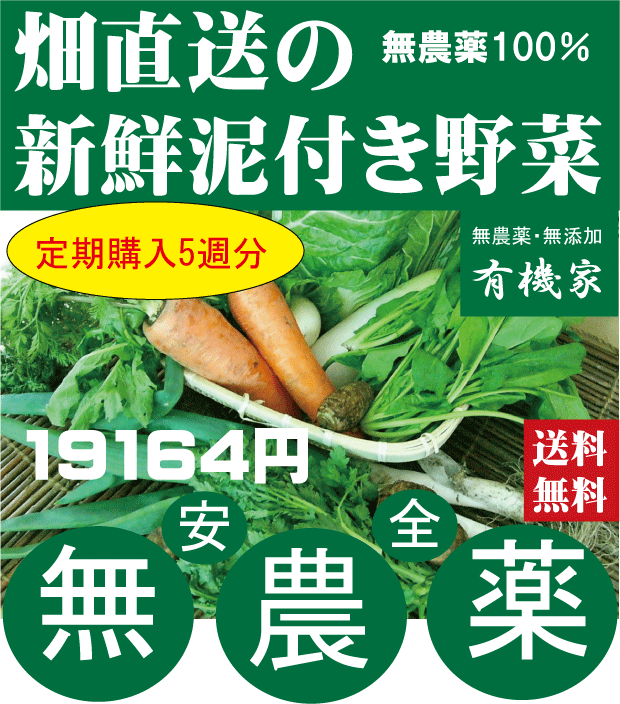 ●定期購入毎週お届け・旬の無農薬100%野菜3832円セット×5週分(送料無料・月、金曜日発送)★送料無料★無農薬野菜
