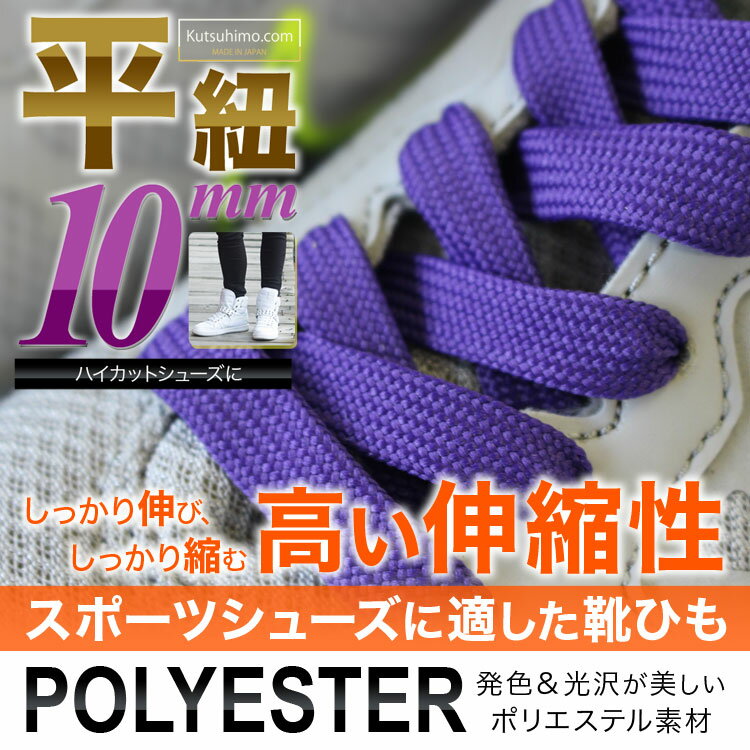 【金属セル】スニーカー用靴ひもポリエステル平ひも10mm幅【長さ:220cm〜240cm】(M-POLY-10)