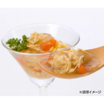 比内地鶏(ササミ)と、国産野菜(コーン・にんじん)を、無添加のコンソメスープでゼリー寄せにしました。