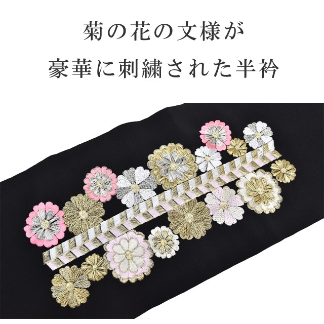 商品情報 半衿 刺繍半衿 彩小径 シルエーヌ 日本製 刺繍 半襟 はんえり 白 金 ピンク 黒 和装小物 振袖 成人式 結婚式 卒業式 入学式 sin8276-bob13 【新品】 ★
