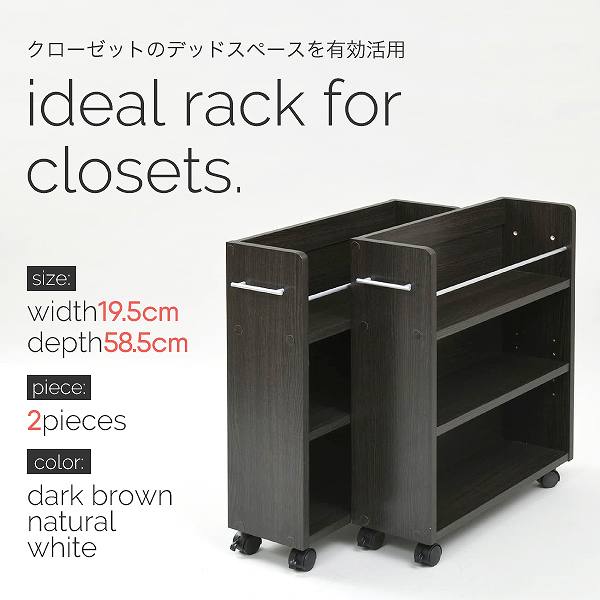 ■商品説明 キャスター付きの便利なクローゼットラック2個組。