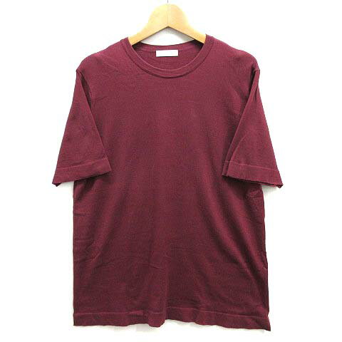【中古】ニュアンス niuhans ファイン ゲージ コットン クルーネック サマーニット セーター 半袖 ワイン 0 2019/KN81 レディース 【ベクトル 古着】 220802