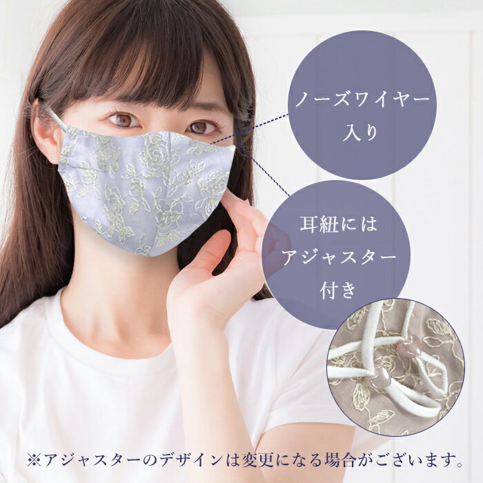 繊細な刺繍がおしゃれでお顔が美しく華やぐ フィルターホルダー付き刺繍マスクです。