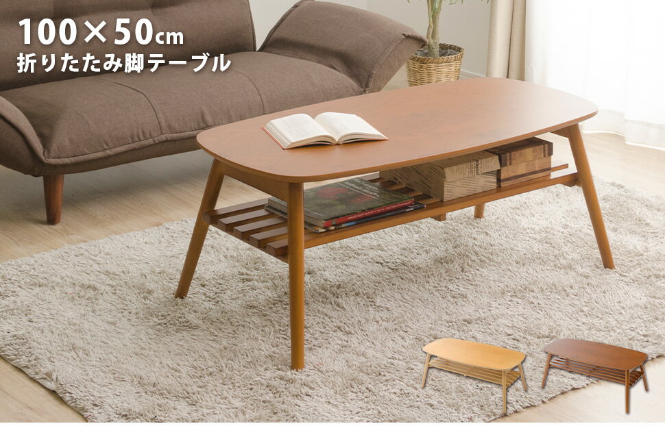 折れ脚 テーブル オシャレ 収納 棚 100×50cm 折りたたみ コンパクト 一人暮らし ノルン