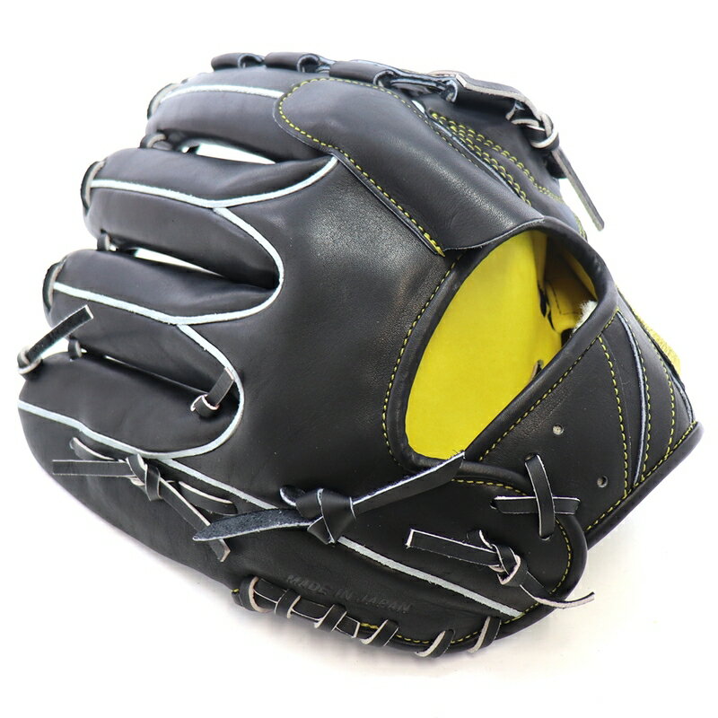 「GLソリッドコア」■ポジション/投手用■基本型/菊池雄星■アシックスサイズ/9■ウェブ/DS■芯の硬さ/普通■本体カラー/ブラック■レースカラー/ブラック■ハミ出し/ホワイト(切ハミ)■ヘリ革/ブラック■ステッチカラー/イエロー■素材/スペシャルオーバーキップレザー■裏革/共革(ペアーゴールド)■サイズ/LH(右投げ用)■生産地/日本 野球館×ASICSゴールドステージ